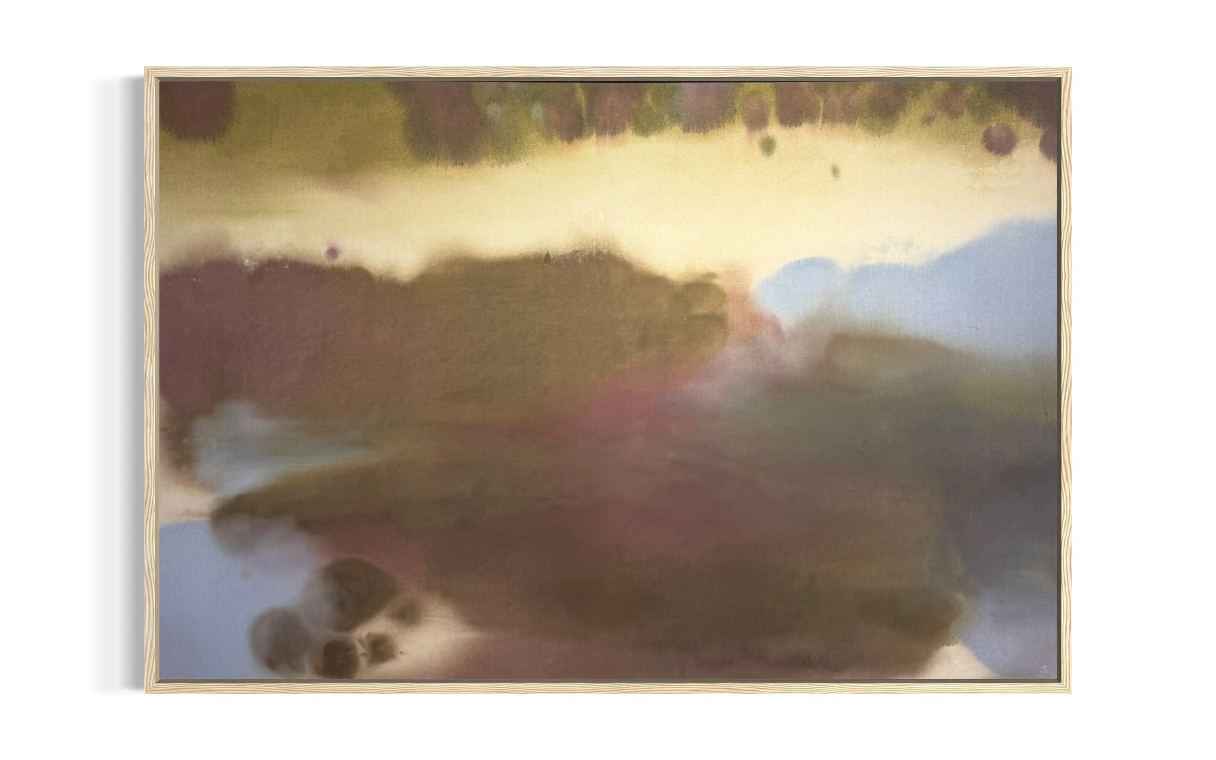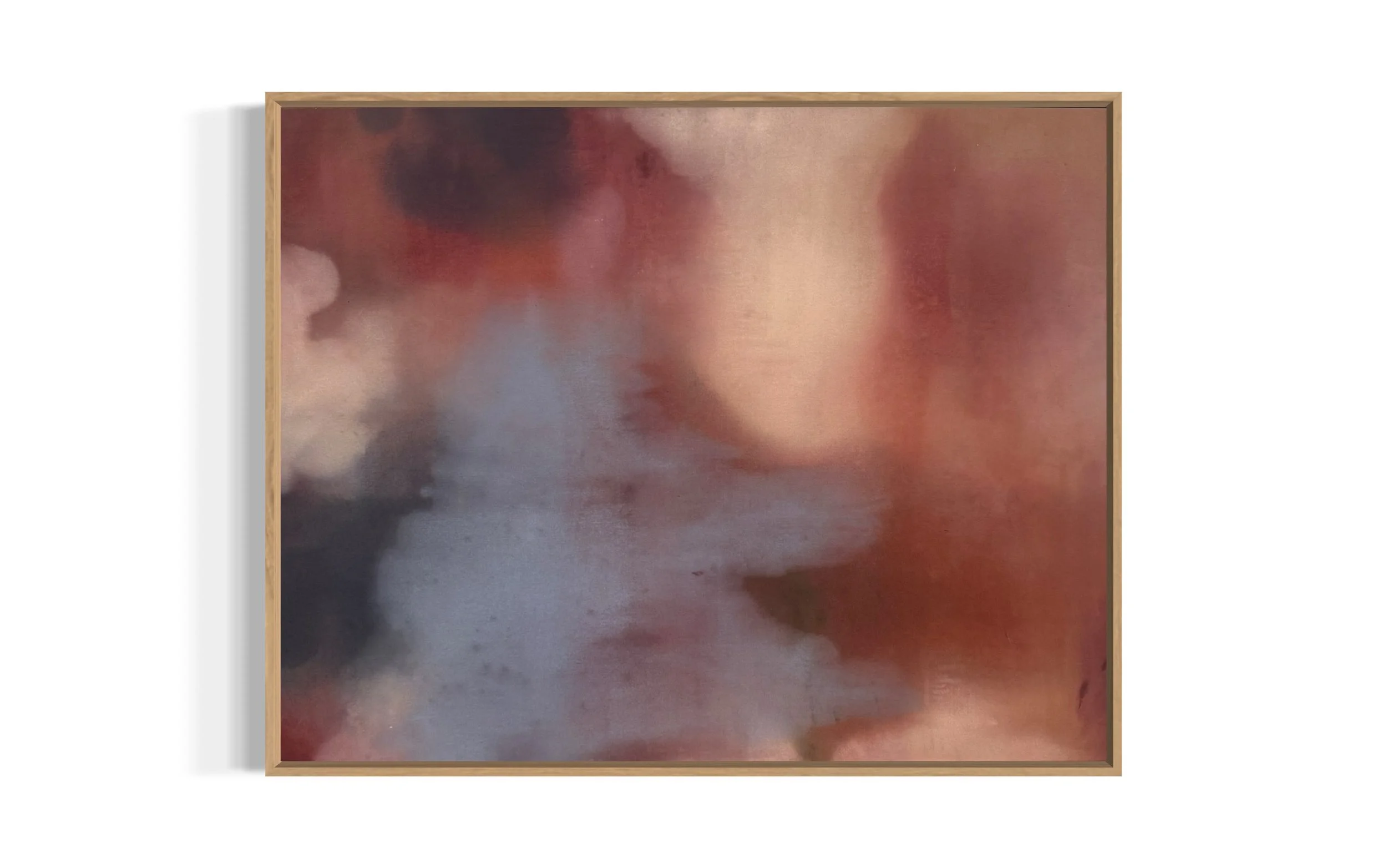 40"x60"x2" acrylic paint + stain dye on raw canvas, light bleached walnut frame.