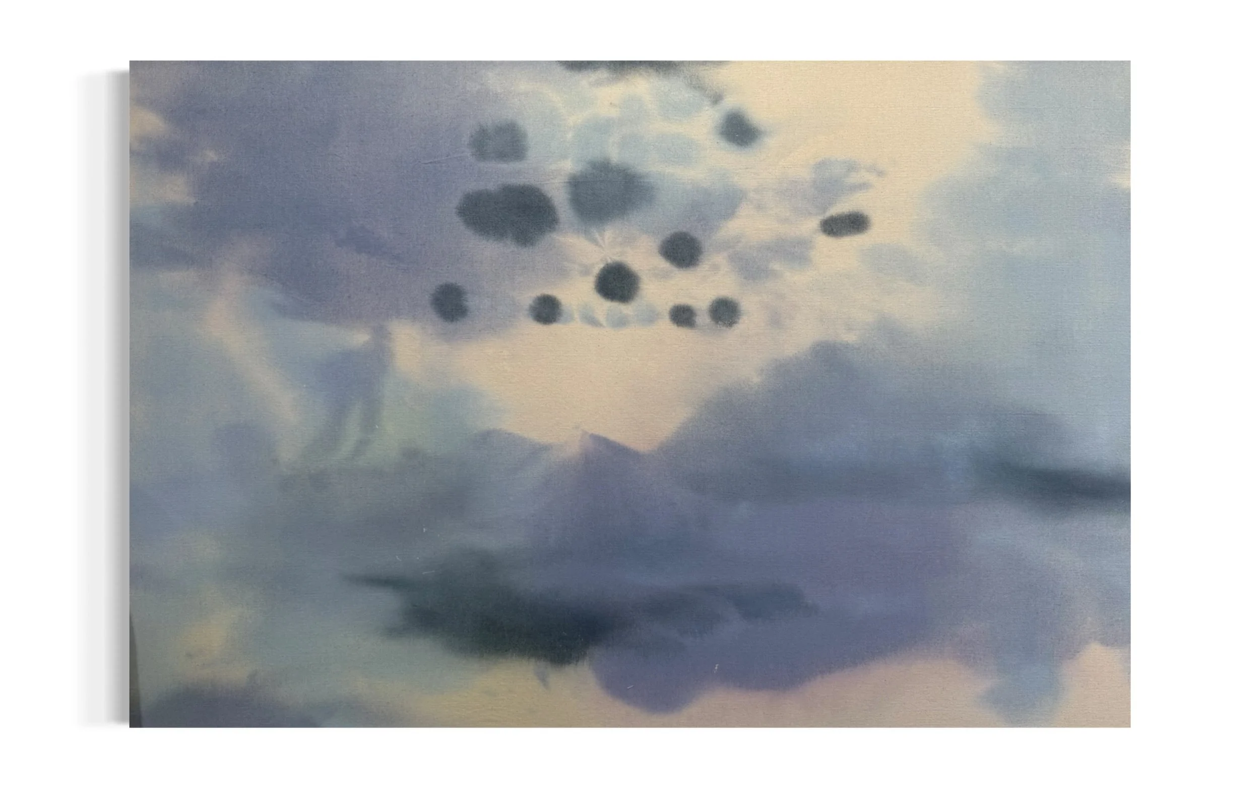 48"x38" acrylic paint + stain dye on raw canvas. Custom frame can be made upon request.